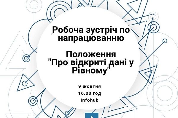 Сьогодні, 9 жовтня о 16.00 в Інформаційно-освітньому просторі «Інфохаб» (м. Рівне, вул. Словацького, 3а) відбудеться робоча зустріч по напрацюванню Положення «Про відкриті дані у місті Рівне».