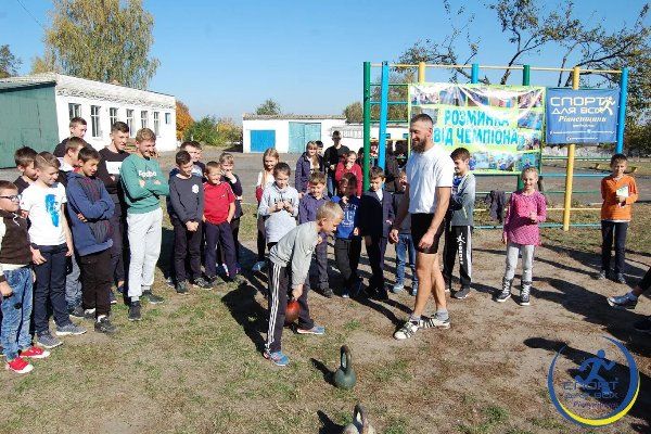 Не обійшлася зустріч і без традиційної розминки, яку спортсмен провів для дітей, і його власного майстер-класу, під час якого він розповідав і показував на власному прикладі правильну техніку виконання поштовхів.
