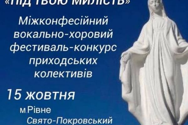 Міжконфесійний вокально-хоровий фестиваль-конкурс парафіяльних колективів «Під Твою милість» розпочнеться 15 жовтня ( понеділок) о 11.00 в Свято-Покровському соборі м. Рівне. Це перший унікальний проект духовних піснеспівів, у якому будуть змагатись хорові колективи різних конфесій.