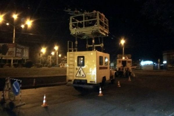 У нічний час в Рівному ремонтують контактну мережу на вул. Соборній та Курчатова. Проводять роботи працівники відділу електрогосподарства КП “Рівнеелектроавтотранс” РМР.