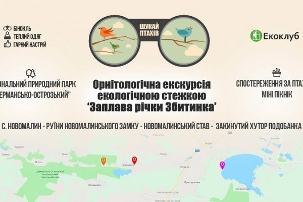 – поспостерігати за птахами на березі Новомалинського ставу, що є орнітологічним заказником «Збитинський»;