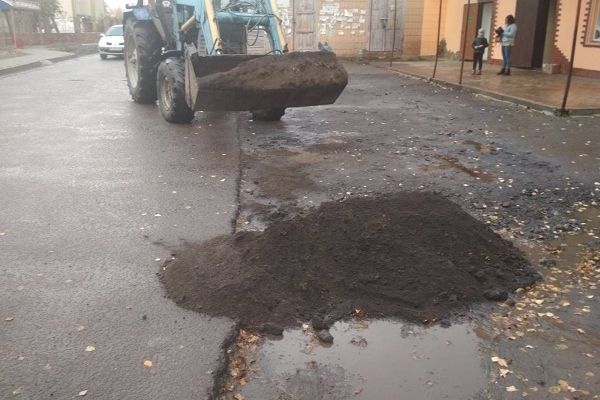Проте роблять це за сумнівною технологією. У ями з калюжами, не осушуючи їх, під дощем кидають асфальт. Про це на своїй сторінці у Фейсбуку написав місцевий житель, громадський активіст Павло Дутко.