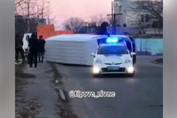 Автобус став на праві колеса і перекинувся. Унаслідок ДТП постраждалих нема, пишуть у спільноті Типове Рівне у Фейсбуку.