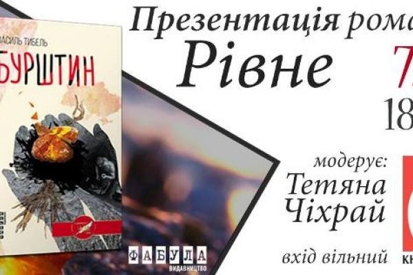 Зустріч з Василем Тибелем та презентація книги “Бурштин” відбудеться цієї п’ятниці, 7 грудня, у Рівному в книгарні «Є» на вул. Короленка, 2. Початок о 18-й годині. Модераторка заходу – Тетяна Чіхрай.