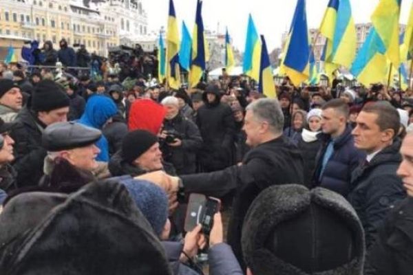 У ці хвилини на Софіївську площу прибув Президент України Петро Порошенко. Він емоційно спілкується з людьми, які чекають початку Об’єднавчого Собору щодо створення Єдиної помісної церкви.