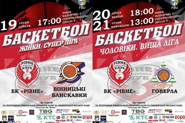 Головні команди Баскетбольного клубу “Рівне” вже готуються до перших домашніх ігор у новому році. Вже цього вікенду уболівальники матимуть можливість підтримати баскетболістів та баскетболісток на трибунах “ДЮСШ-4” у трьох поєдинках.