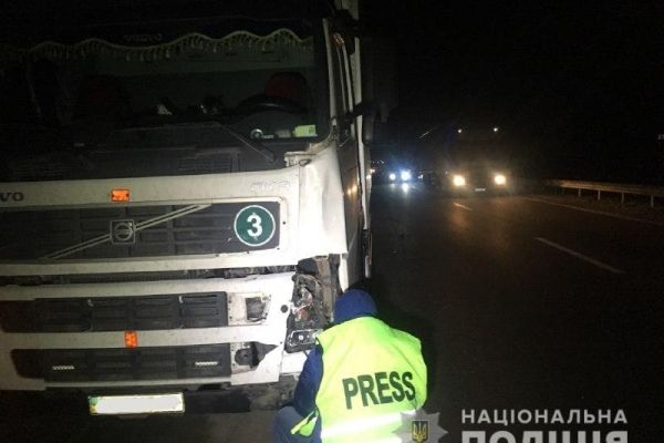 Унаслідок ДТП пішохід від отриманих травм загинув на місці події. Його особу наразі встановлюють поліцейські. Водій вантажівки відповідно до медичного освідування був тверезим.