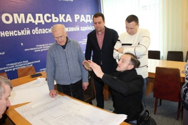 Наскільки проект будівництва спорткомплексу доступний для людей з інвалідністю, обговорили в облдержадміністрації. Серед присутніх – перший заступник голови Рівненської ОДА Віталій Ундір, начальник управління будівництва та архітектури ОДА Ярослав Мазярчук, проектанти. А також –заслужений майстер спорту України зі спортивних танців на візках Іван Сівак, представники Українського товариства сліпих (УТОС) і Українського товариства глухих (УТОГ).