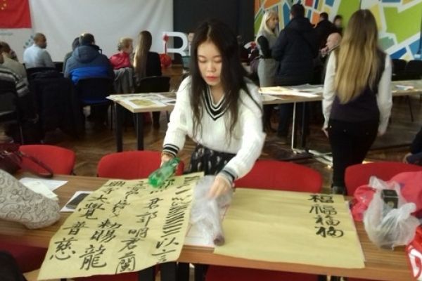 Приємно було спостерігати за дружною атмосферою, що панувала в залі між студентами різних національностей: українці залюбки демонстрували на собі китайський національний одяг, з цікавістю розглядали філіжанки для чайної церемонії, кожний з них бажав отримати на великих червоних серветках традиційні написи-побажання на наступний рік.