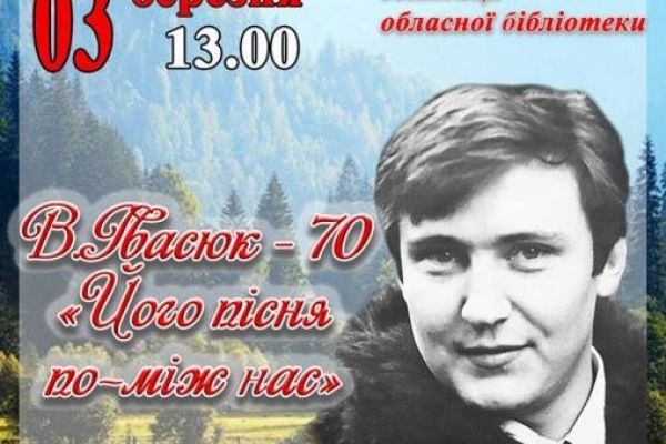 3 березня о 13 год. запрошуємо шанувальників музичного мистецва та всіх бажаючих вшанувати пам’ять українського композитора, поета, одного із основоположників української естрадної музики Володимира Івасюка, якому 4 березня виповнилося б 70 років, інформує сайт книгозбірні.