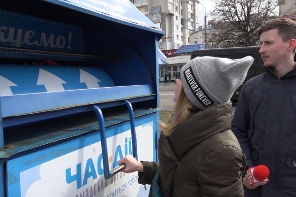 Цей контейнер для збору одягу розташований поблизу Покровського собору (Соборна, 6а), ще один такий же ж контейнер розташований біля ТЦ “Чайка” (вул. Гагаріна, 16). Також на своїй сторінці у Фейсбуці ГО “Час-ДІй” інформують, що непотрібний одяг можна безпосередньо віднести до них в офіс, котрий розташований за адресою вул. Київська, 10а. Працює він із понеділка по четвер з 9:00 до 16:00 год.