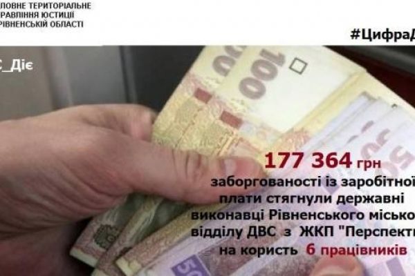 177 364 грн заборгованої зарплати стягнули цього тижня державні виконавці Рівненського міського відділу ДВС з ЖКП «Перспективне». Зароблені кошти повернули шістьом працівникам, інформує сайт управління юстиції.