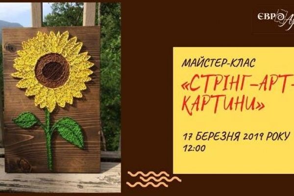 17 березня в галереї «Євро-Арт» о 12.00 відбудеться майстер-клас з STRING ARTу. Це один із напрямів у hand made творчості, в основі якого цвяхи і нитки. З дерев’яних панно, куди молотком забиваються цвяхи і натягуються нитки, виходять цілі картини, інформують прес-служба галереї у Фейсбук.