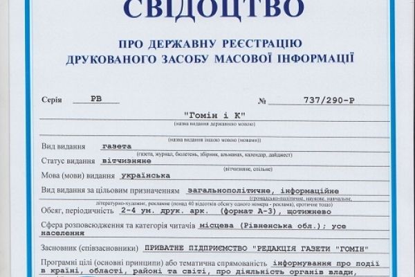 Річ у тім, що згідно з протоколом зборів співзасновників від 14 квітня 2008 року Млинівська районна державна адміністрація вийшла зі складу співзасновників редакції газети «Гомін», однак у цьому протоколі не йшлося про вихід органу державної влади зі складу співзасновників ЗМІ газета «Гомін». Відтак тоді видання не було перереєстроване і в Державному реєстрі ЗМІ та інформаційних агентств як суб’єктів інформаційної діяльності було зафіксовано Млинівську райдержадміністрацію як одного з його співзасновників.