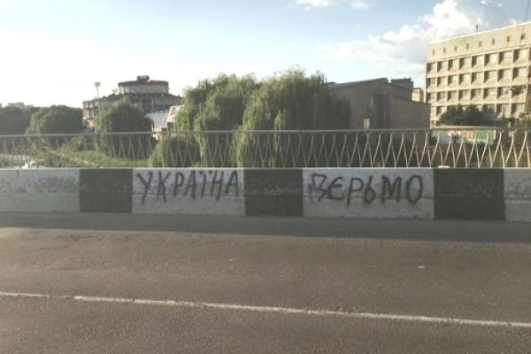 Величезні надписи, сповнені ненависті до держави, зроблені в чорному кольорі російською мовою виявлені вже у двох місцях обласного центру.