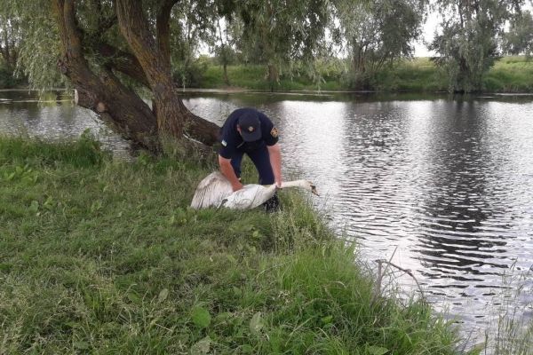 Дубровицькі бійці ДСНС врятували лебедя