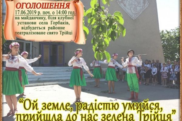На майданчику поблизу клубу в селі Горбаків відбудеться районне театралізоване свято Трійці.