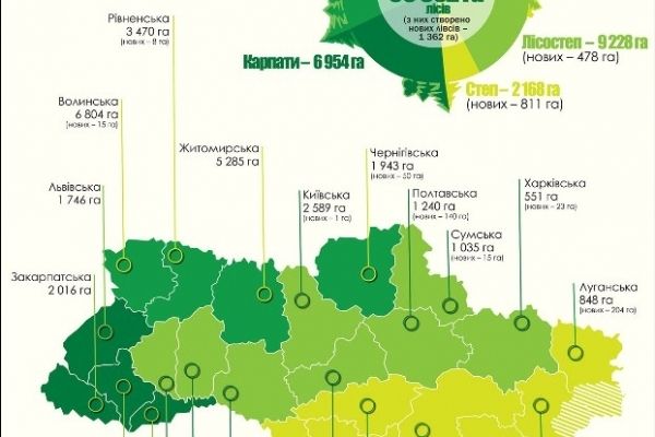 На інфографіці можна детально ознайомитися з відтворенням лісів у кожній області України.