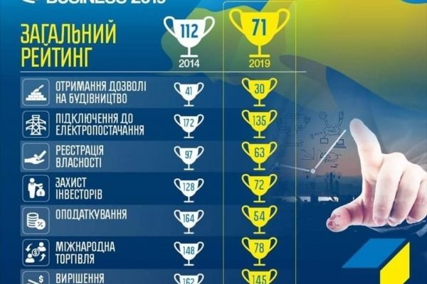 Найбільш відчутні зміни за останні п’ять років відбулися у сегментах оподаткування (+110), міжнародної торгівлі (+70), захисту інвесторів (+56). Також відбулося зростання на 37 позицій за компонентом “підключення до електромереж”, на 34 – “реєстрація власності”, на 17 – “урегулювання питань щодо неплатоспроможності”, на 11 – “отримання дозволів на будівництво”.