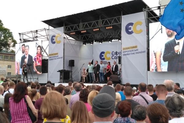 У Рівному на майдані Незалежності сьогодні виступав Петро Порошенко. З гуртом «От вінта»