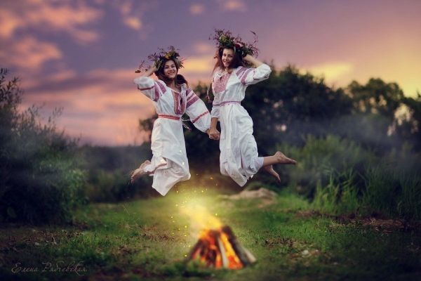 Пари, створені у цей вечір, стрибали через вогонь тричі, адже вважали це обрядом очищення. Якщо парубок стрибав вище – у його родині буде вдалий урожай, а якщо ж утрапив у полум’я – станеться якась біда. Якщо полум’я вдало перестрибнуть дівчина з хлопцем – одружаться та житимуть у злагоді та достатку. Молодь вважала, що через багаття потрібно стрибати лише з судженим, або ж судженою, а не з будь-ким іншим.