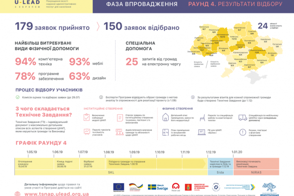 Експертна комісія проаналізувала 179 заявок із 24 областей України та відібрала 150 для подальшого аналізу спроможності громад та розробки індивідуальних технічних завдань для створення чи модернізації ЦНАП.