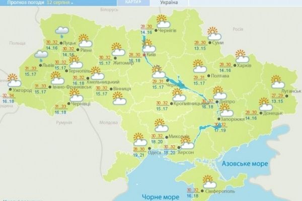 У понеділок, 12 серпня, на більшій частині території України, за винятком двох областей, опадів не очікується.