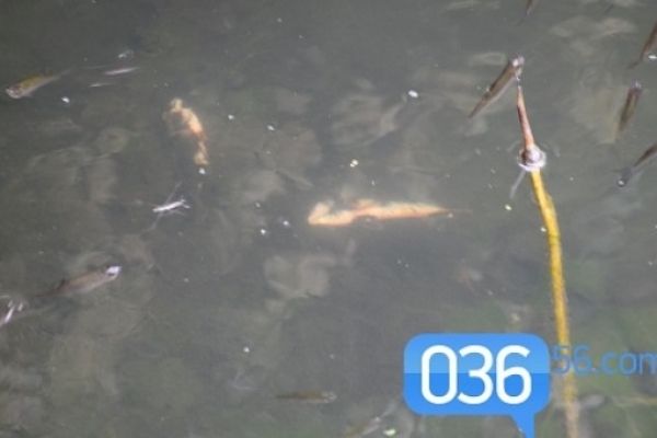 Зразу знайти рибу було важко, оскільки вода темна і чимало плаває мальків. Однак, саме біля берега в заростях і знаходиться здохла риба. Присутні не вірять, що вона задихнулась від різкого перепаду температури. Це й підтверджується на ставку, який розташований поруч.