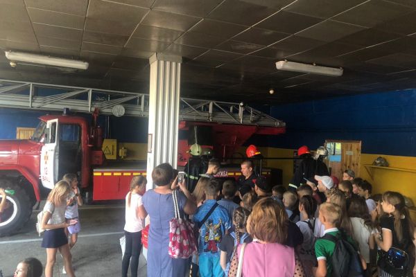 Під час екскурсії рятувальники показали дітям пожежно-рятувальні автомобілі, бойовий одяг, захисне спорядження, пожежно-технічне обладнання для ліквідації пожеж та порятунку людей. Діти мали можливість приміряти пожежні каски, маски для захисту органів дихання в непридатному для дихання середовищі, бойовий одяг, а також сфотографуватись.