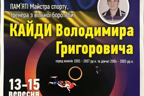 14-15 вересня відбудеться 13 відкритий всеукраїнський турнір з вільної боротьби серед юнаків та дівчат па мяті Майстра спорту тренера Кайди Володимира Григоровича.