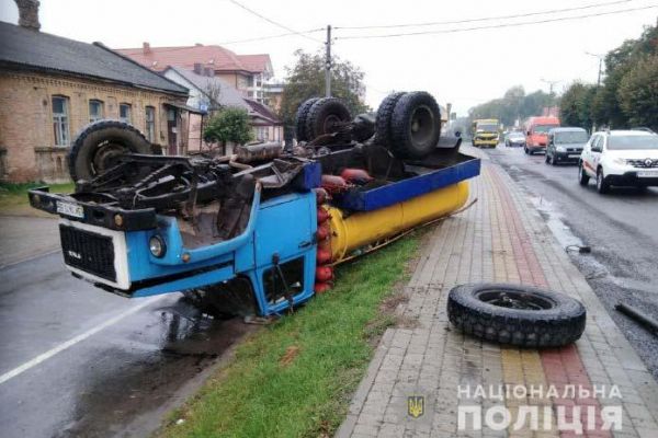 Поліцейські встановили, що 30-річний місцевий житель, водій автомобіля «Volvo» на іноземній реєстрації, виїхав на смугу зустрічного руху, де зіткнувся із молоковозом під керуванням 48-річного жителя села Злинець. Від удару у вантажівки відлетіло колесо, внаслідок чого вона стала некерованою та перекинулася.