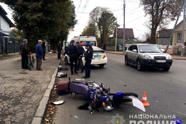 За попереднім оглядом у мотоцикліста медики діагностували перелом ноги, забої тіла, голови та перелом тазу під питанням. Нині його ще оглядають у лікарні.