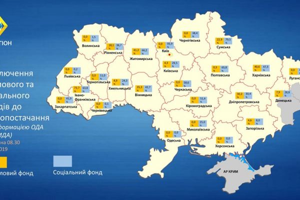 Загалом по Україні до опалення підключено 33,6% об’єктів соціального фонду.