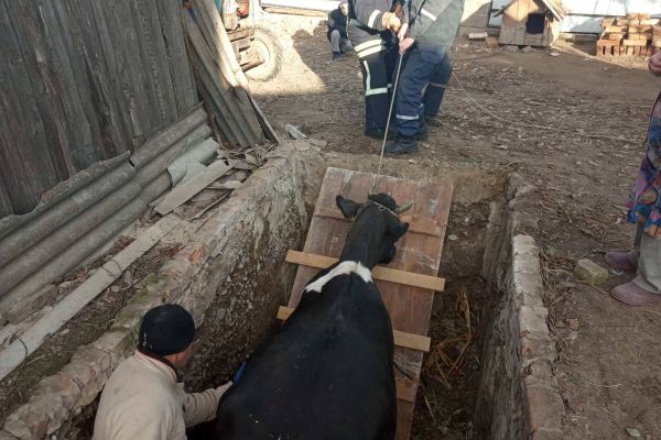 Бійці ДСНС на місці зробили дерев’яного трапа за допомогою рятувальних мотузок обережно по ньому дістали тварину. Корівка на кличку Чорнорябка фізичних ушкоджень не зазнала. Господарі щиро подякували рятувальникам за швидку допомогу, чуйність та небайдужість.