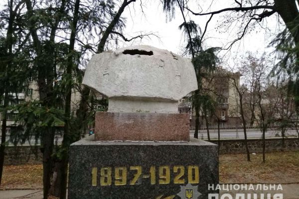 Під час огляду місця злочину правоохоронці виявили відсутність голови погруддя пам’ятника Олекові Дундичу, розташованого на вулиці Паркова.