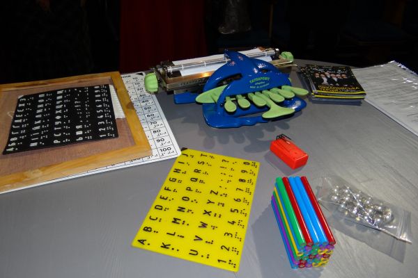 Освітянам продемонстрували обладнання для людей з порушеннями зору: друкарську машинку шрифтом Брайля, DAISY плеєр, магнітний конструктор, а також роботу комп’ютерної програми для незрячих.