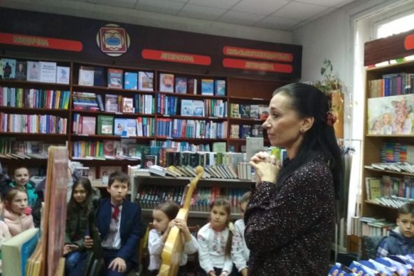 Рівненська майстриня народної творчості Олена Медведєва розповіла школярам про магічний процес народження казки та презентувала книжечку “Крамниця часу”.