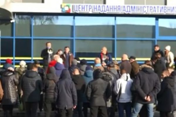 Під стіни будівлі, де проходять засідання сесії обласної ради, прийшли невдоволені громадяни. Вони висловили свій протест проти відкриття ринку продажу землі.