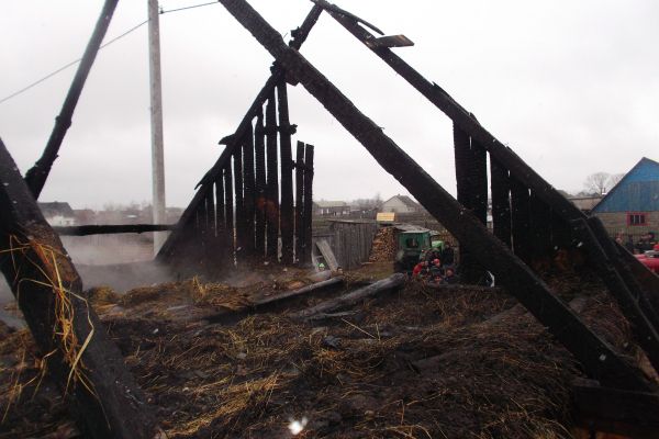 Внаслідок пожежі вогнем знищено покрівлю та перекриття, 200 тюків сіна та соломи. Причина та збитки від пожежі встановлюються.