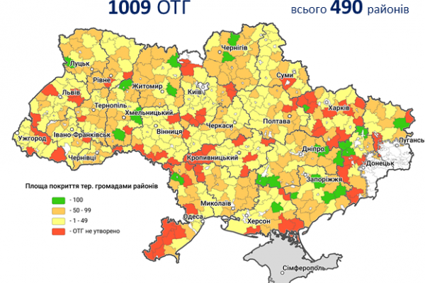 Найбільше покриття ОТГ має Млинівський та Демидівський райони, де поза об’єднанням – лише по одній сільраді. Два райони – Здолбунівський та Корецький – не мають жодної ОТГ.