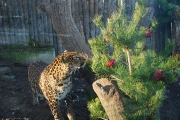 У новорічні дні тварини Рівненського зоопарку отримали незвичайний сюрприз – хвойне збагачення середовища зі смаколиками!
