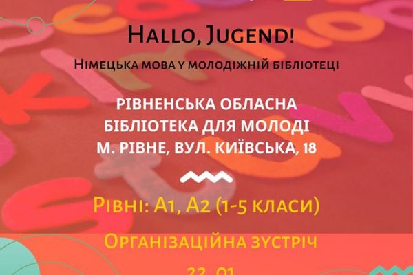 Рівненська обласна бібліотека для молоді запрошує вивчати Deutsch in der Jugendbibliothek, тобто німецьку мову, у молодіжній бібліотеці. Саме там запускають лінгвістичну студію “Hallo, Jugend!”