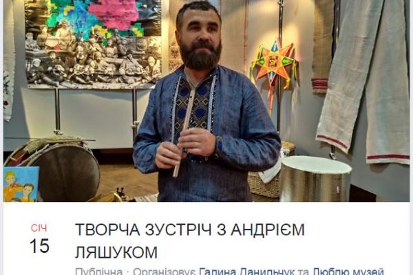 Завтра, у середу, 15 січня о 16:00 – відбудеться творча зустріч з Андрієм Ляшуком. Зустріч пройде в Рівненському обласному краєзнавчому музеї.