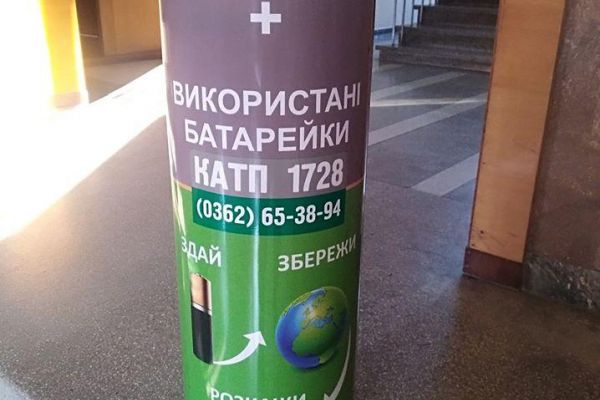 У Рівному працівники КАТП 1728 встановили контейнери для збору використаних батарейок та побутових акумуляторів в рамках програми утилізації хімічних джерел струму.