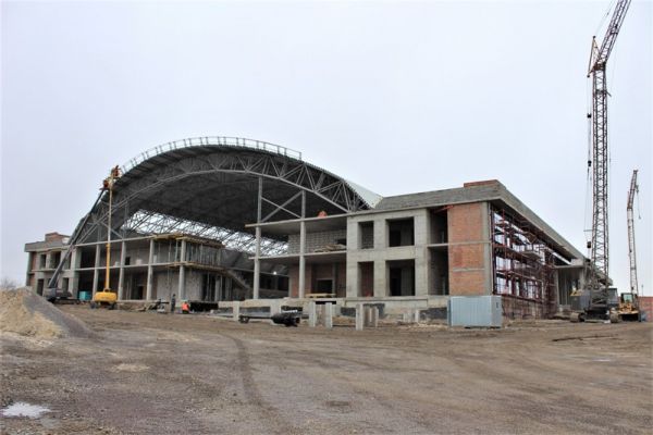 Менш як за два роки на 4-ох гектарах виросли два поверхи майбутнього спортивного комплексу. Незважаючи на зимову пору, погодні умови сприяють і цьогоріч продовжувати будівництво.