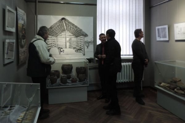 Цікавими експонатами виставки є керамічний посуд, предмети побуту, озброєння та прикраси різних археологічних культур (лінійно-стрічкової кераміки, трипільскої, городоцько-здовбицької, тшинецько-комарівської, празької).