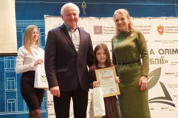 Юних знавців Біблії привітали заступник голови Рівненської ОДА Сергій Гемберг та заступник начальника управління освіти і науки Ольга Ладюк.