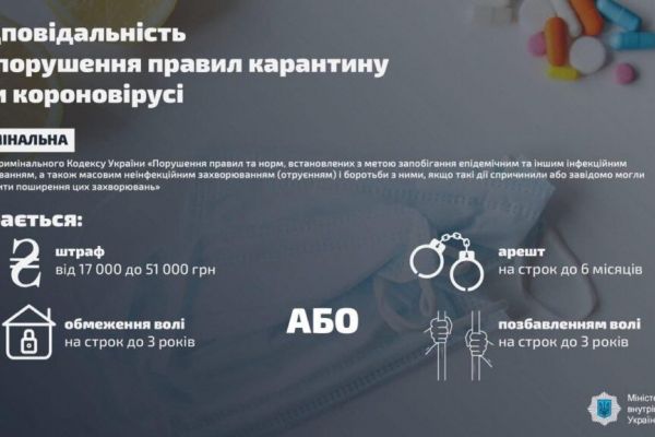 Штраф за порушення правил карантину, санітарно-гігієнічних, санітарно-протиепідемічних правил і норм становитиме від 17 тисяч до 32 тисяч гривень.