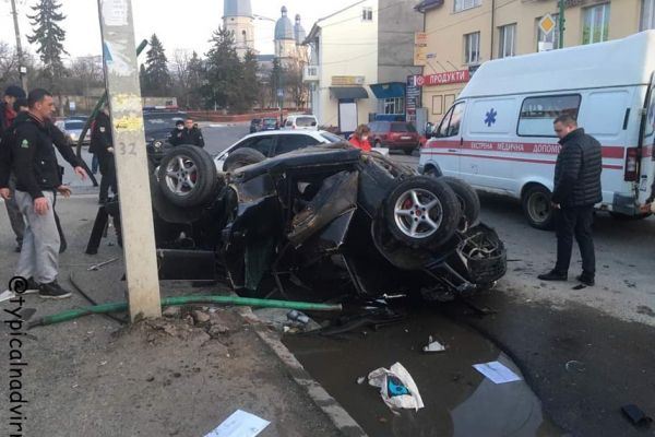 Водій автомобіля “Мерседес” не впорався з керуванням та на швидкості врізався у стовп. Автівка перекинулася. На місце прибули рятувальники та швидка.