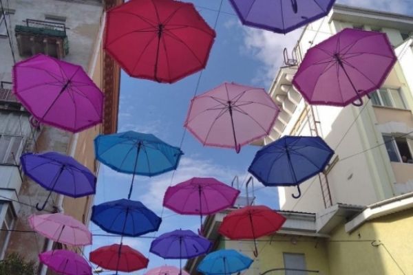 У Рівному на вулиці Шкільній з’явилася інсталяція з парасольками.